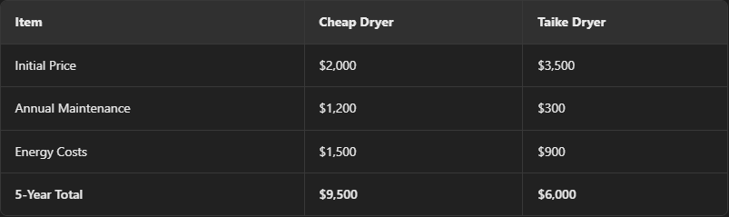 Het is verleidelijk om te kiezen voor een budgetdroger, maar verborgen uitgaven kunnen snel oplopen. Dit is waar je op moet letten-en waarom de producten van Taike de slimmere investering zijn. Risks van goedkope drogers